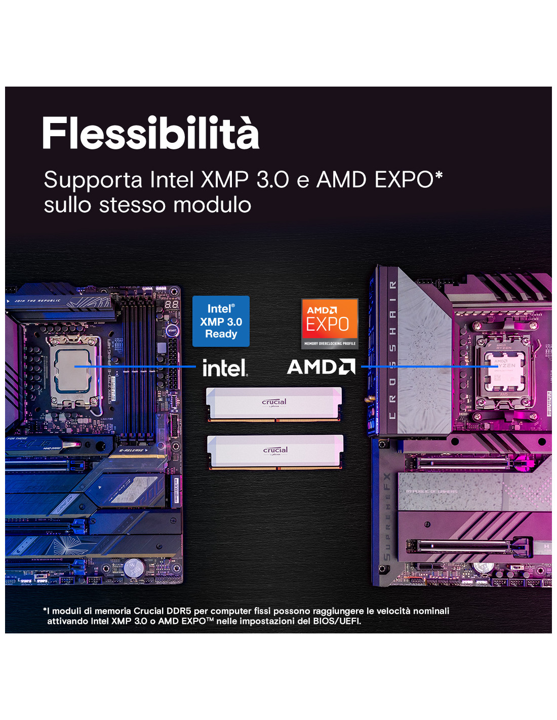 Supporta sullo stesso modulo sia Intel XMP 3.0 sia AMD EXPO™