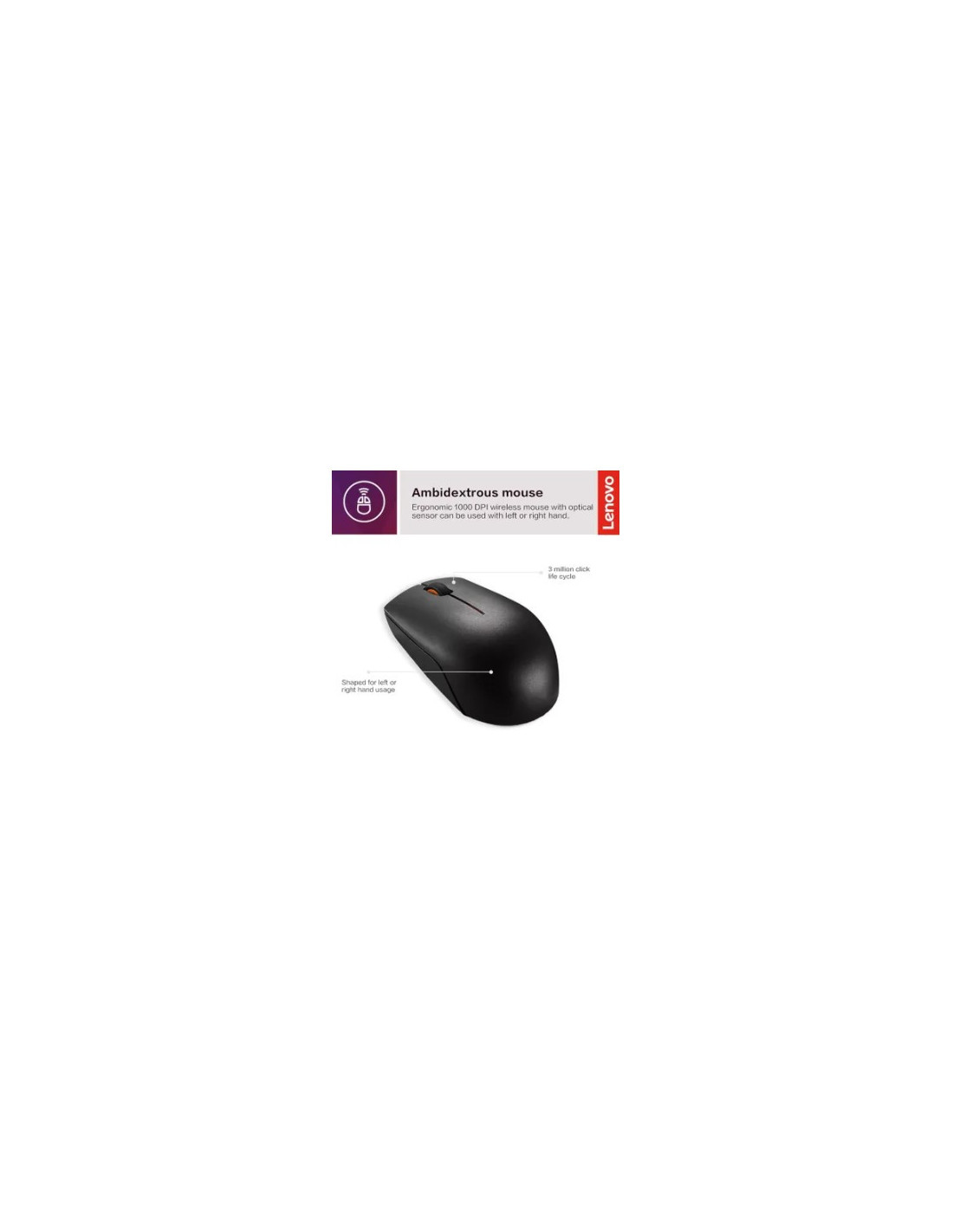 Mouse Ufficio Ambidestro RF Wireless Ottico 1000 DPI Nero